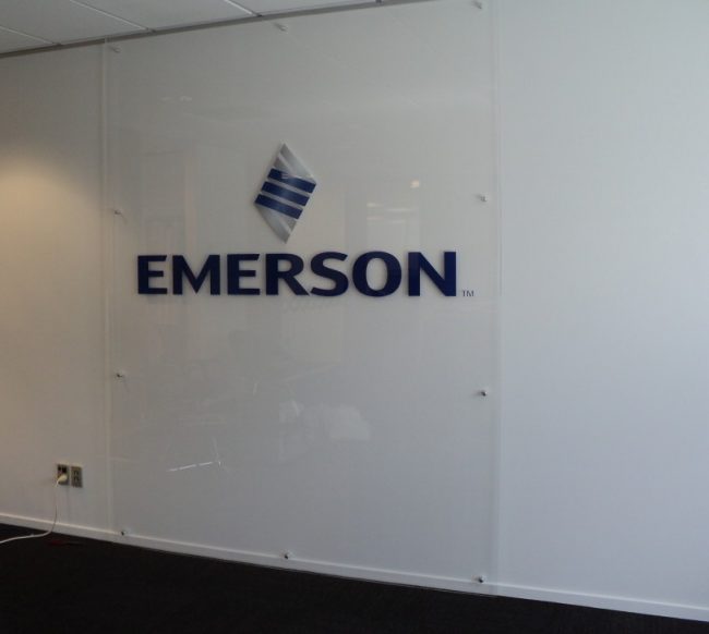 Vinyl Cut graphics on glass for Emerson
